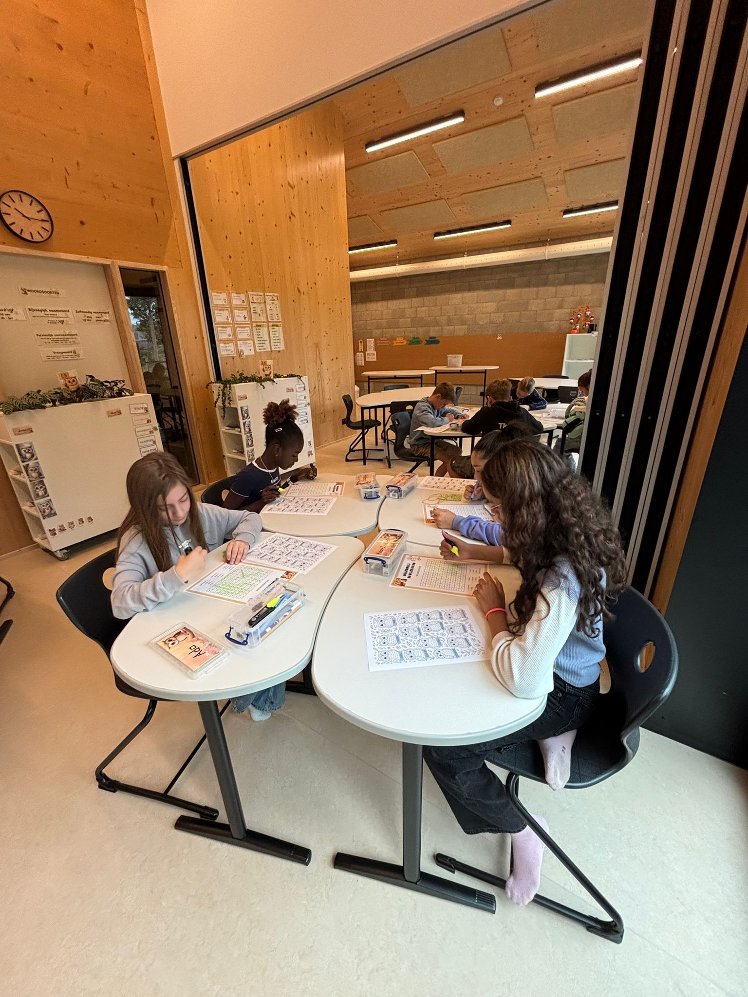 Ze doen aan groepswerk, leren presenteren, argumenteren en reflecteren. Wereldoriëntatie gebeurt projectmatig, waarbij ze echte maatschappelijke thema’s verkennen. We moedigen kinderen aan om verantwoordelijkheid te nemen, kritisch na te denken en met plezier te leren, zodat ze vol vertrouwen en nieuwsgierigheid hun vleugels kunnen uitslaan.